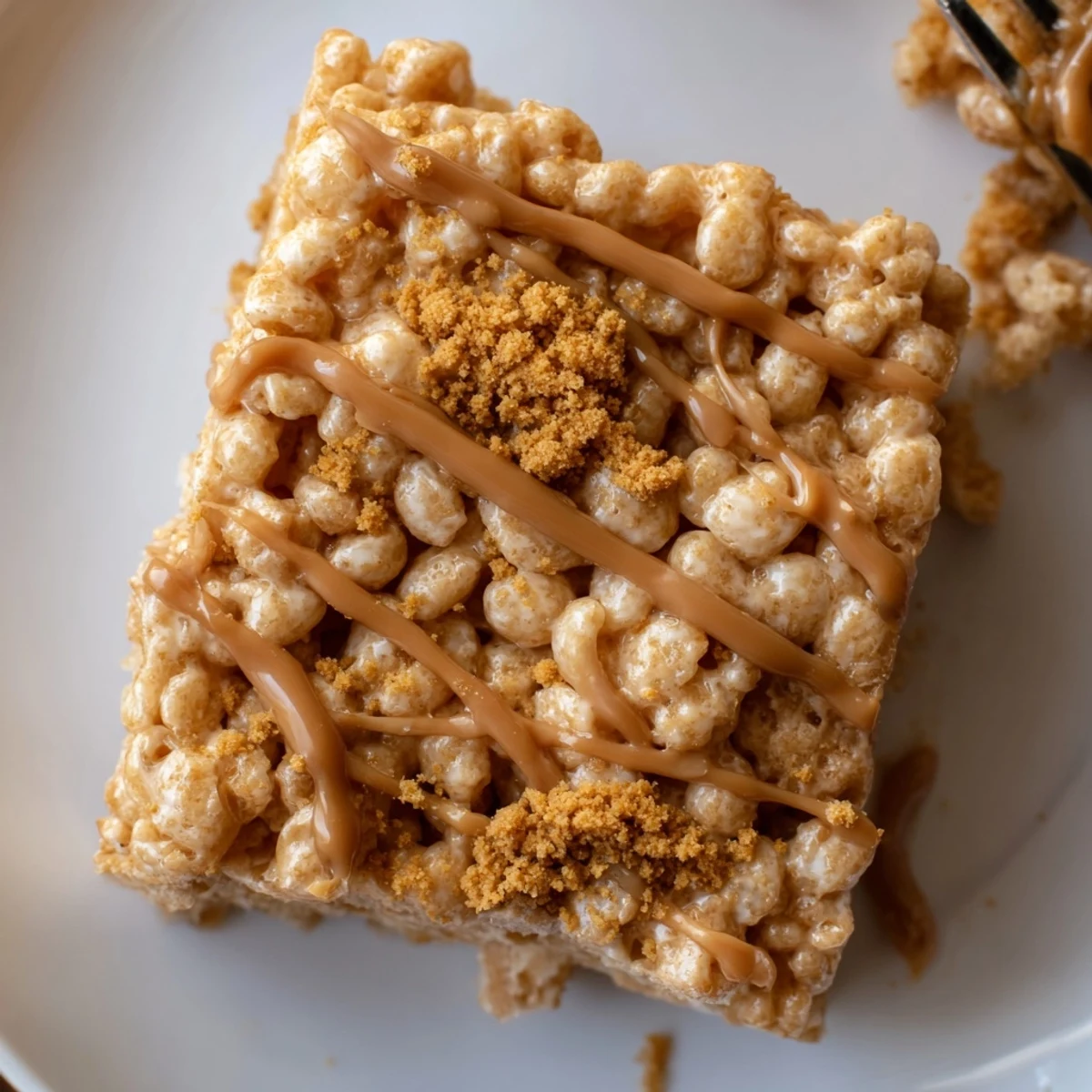 Start by melting butter and Biscoff spread over low heat until smooth, then add mini marshmallows and stir until fully melted. Remove from heat and fold in Rice Krispies until evenly coated. Press the mixture into a lined 9x9-inch pan, drizzle extra melted Biscoff and sprinkle crushed cookies on top. Let set about 45 minutes at room temperature or chill 30 minutes for firmer bars; cut into 16 squares and serve warm or at room temperature.