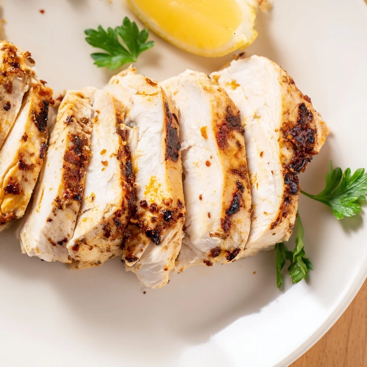 - Set the chicken aside for 5 minutes before slicing. Sprinkle with parsley and serve with lemon wedges on the side.