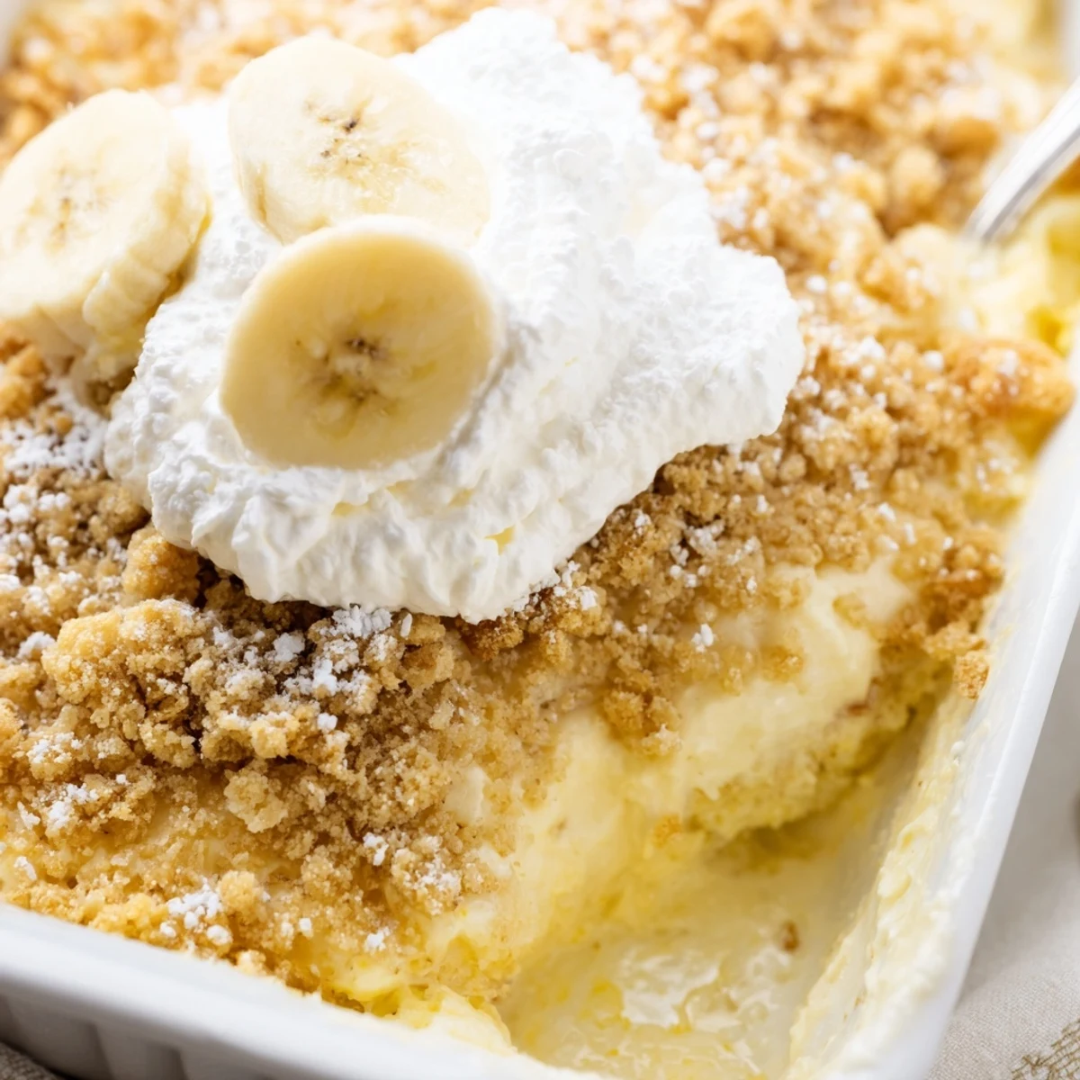 What makes this dessert special is how the layers meld during baking—the cheesecake becomes silky, the pudding intensifies, and the cake mix transforms into a tender, buttery crust. Top with freshly whipped cream, extra banana slices, and vanilla wafers for the perfect finish.